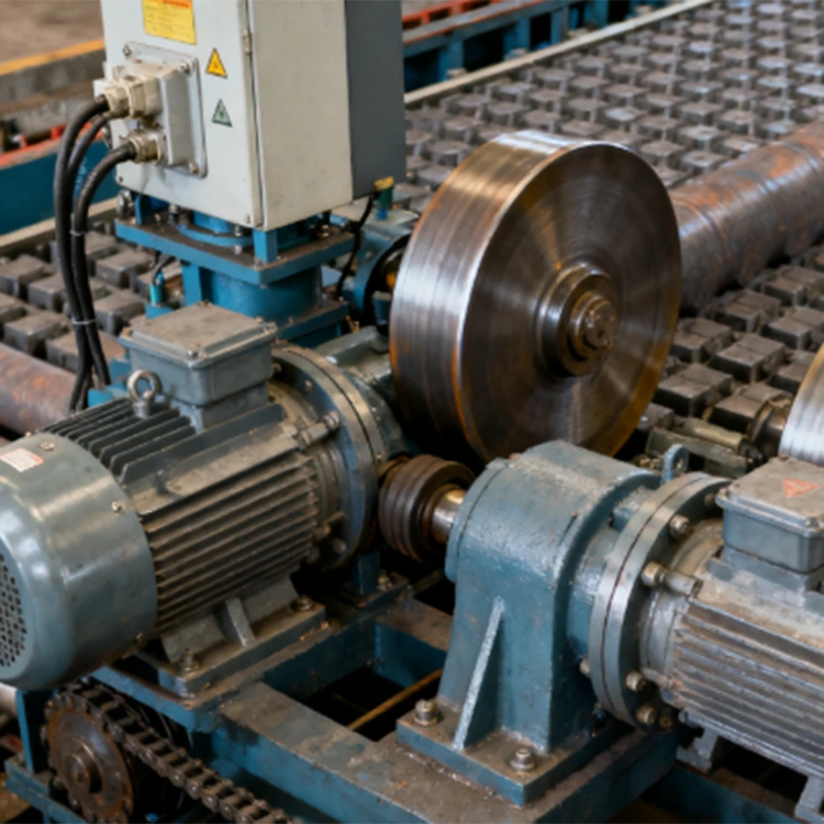 Sistem pemacu: terdiri daripada motor, pengurangan, dan rantaian pemacu, sistem beroperasi dengan lancar dan tepat mengawal kelajuan dan arah penggelek, memastikan pengangkutan teratur bahan yang digulung.